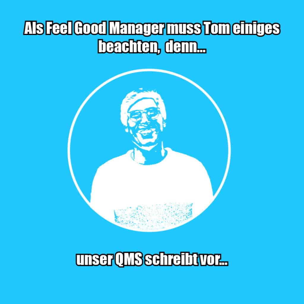 Feelgood Manager Tom hat einiges zu tun… denn unser QMS schreibt Prozesse auch für Prozesse vor, die nur scheinbar alltäglich erscheinen. Wichtig sind diese Punkte allemal.